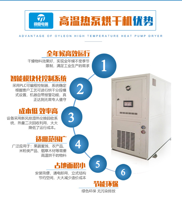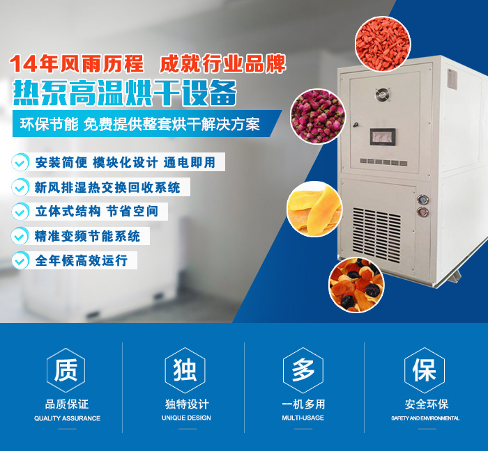 同恩牌熱泵干燥機采用谷輪或大金壓縮機,采用熱泵技術,節(jié)能脫水,使得干燥效率大大提高,特別是在高溫狀況下干燥物料,有很高的能效比